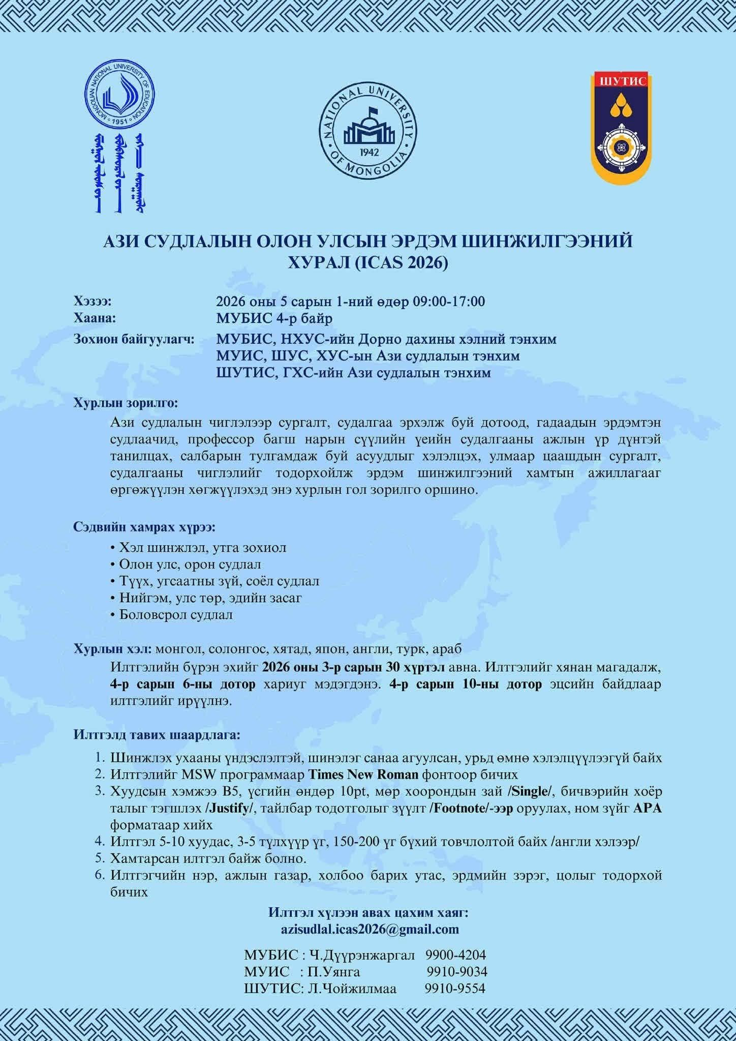 Ази судлалын олон улсын эрдэм шинжилгээний хурал (ICAS 2026)