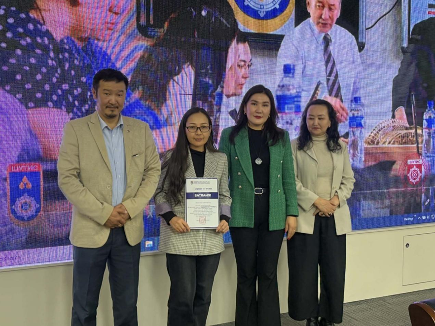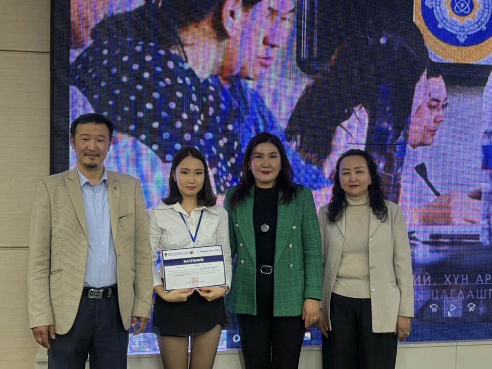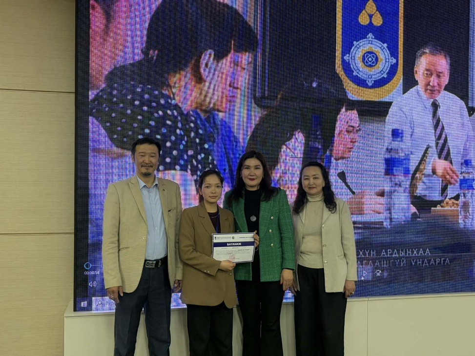 “Эрдмийн XXV чуулган” шилдэг өгүүлэл шалгаруулах хурлын шагнал гардуулах ёслолын ажиллагаанд сургалтын бодлого, зохицуулалтын албаны дарга доктор (Ph.D) М.Эрдэнэтуяа болон комиссын гишүүд, эрдэмтэн багш, оюутнууд оролцлоо.