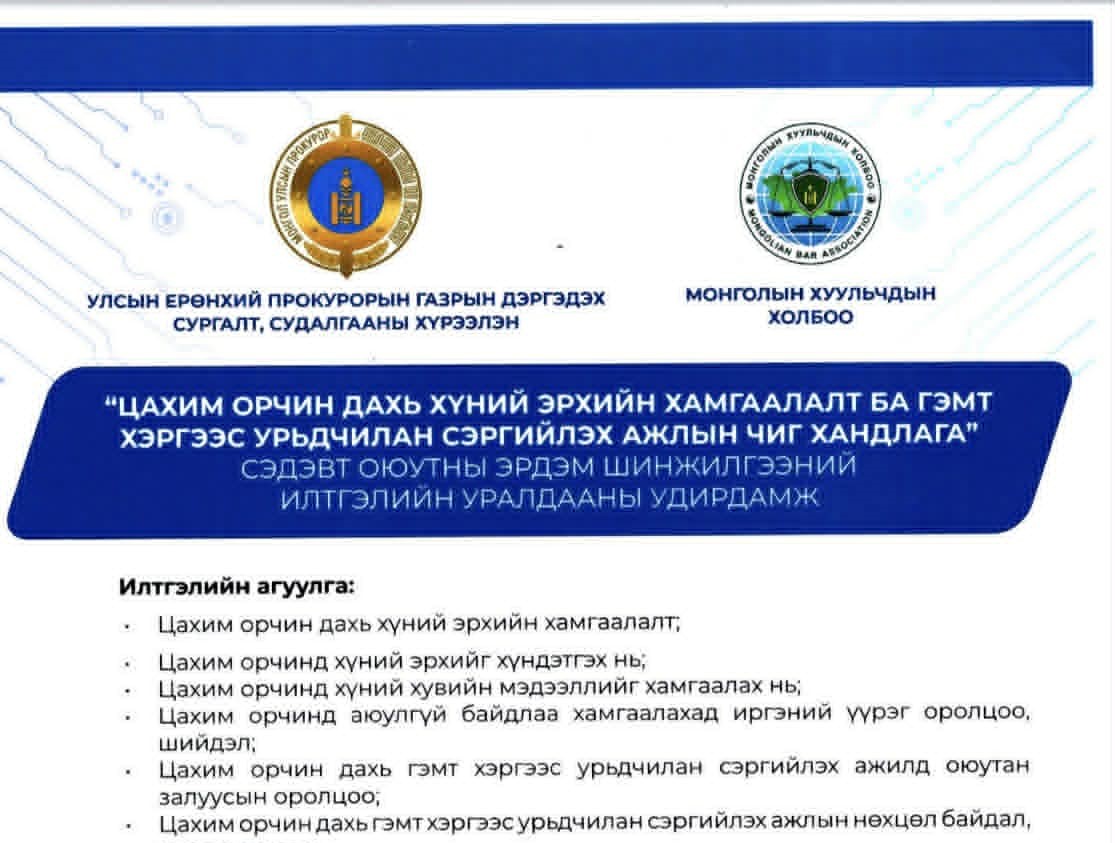 "Цахим орчин дахь хүний эрхийн хамгаалалт ба гэмт хэргээс урьдчилан сэргийлэх ажлын чиг хандлага" сэдэвт оюутны эрдэм шинжилгээний илтгэлийн уралдаан