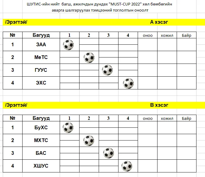 ШУТИС-ийн багш, ажилчдын дундах "MUST-CUP 2022" хөл бөмбөгийн аварга шалгаруулах тэмцээний тоглолтын оноолт