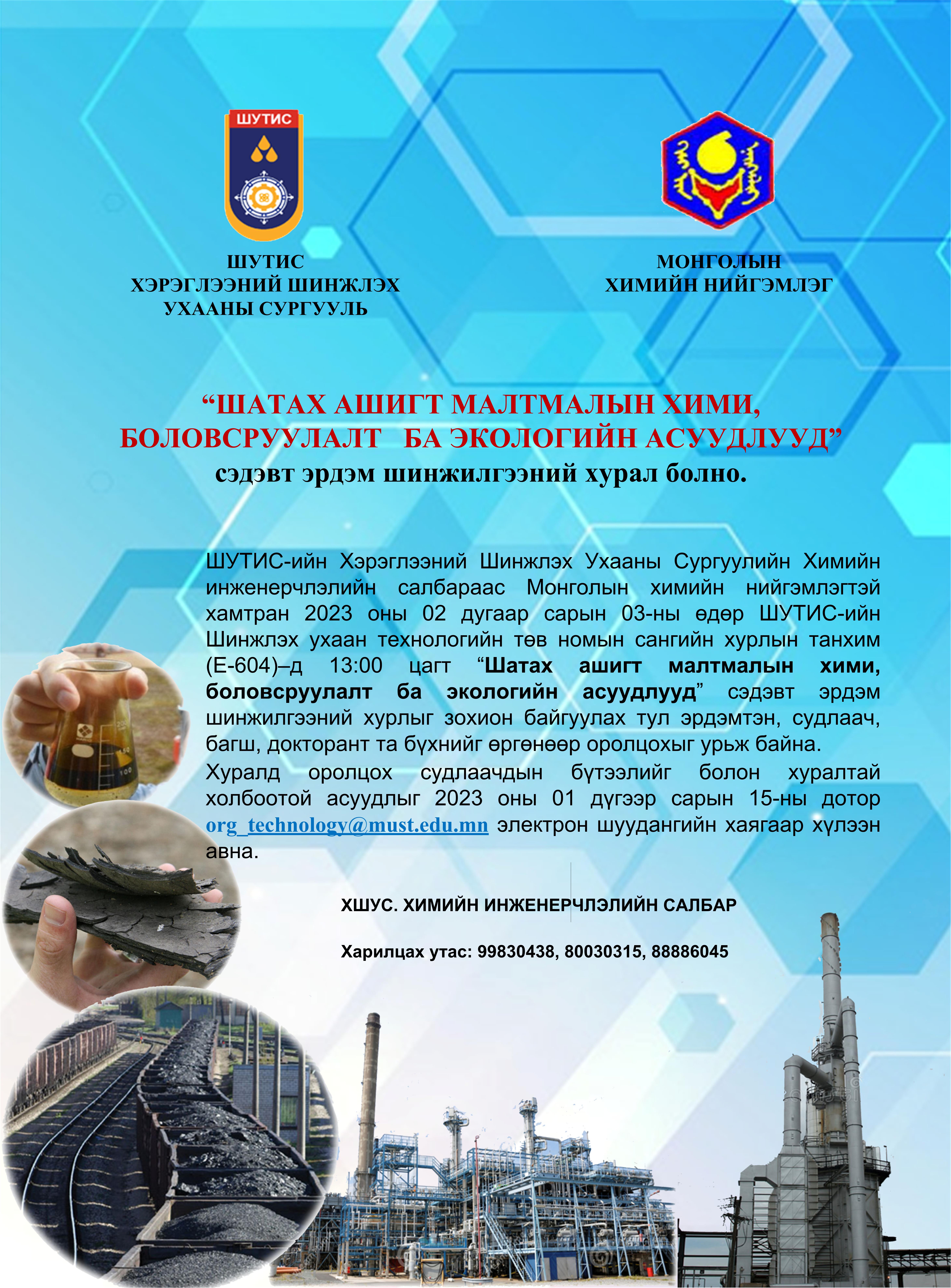 "Шатах ашигт малтмалын хими, боловсруулалт ба экологийн асуудлууд" сэдэвт ЭШ-ний хурал зохион байгуулагдана.
