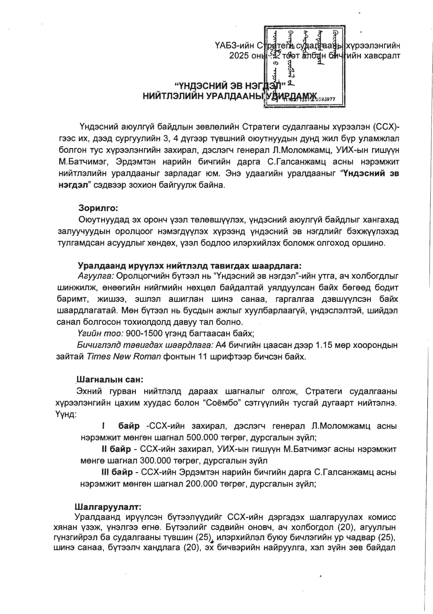 "Үндэсний эв нэгдэл" нийтлэлийн уралдаан