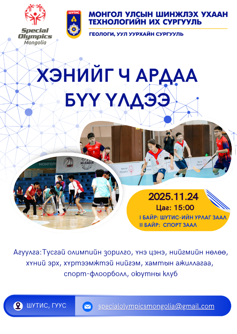 Монголын Тусгай Олимпын Хороо дараах чиглэлээр оюутан залууст мэдээлэл өгч, хамтарсан спортоор өрсөлдөв. Үүнд: