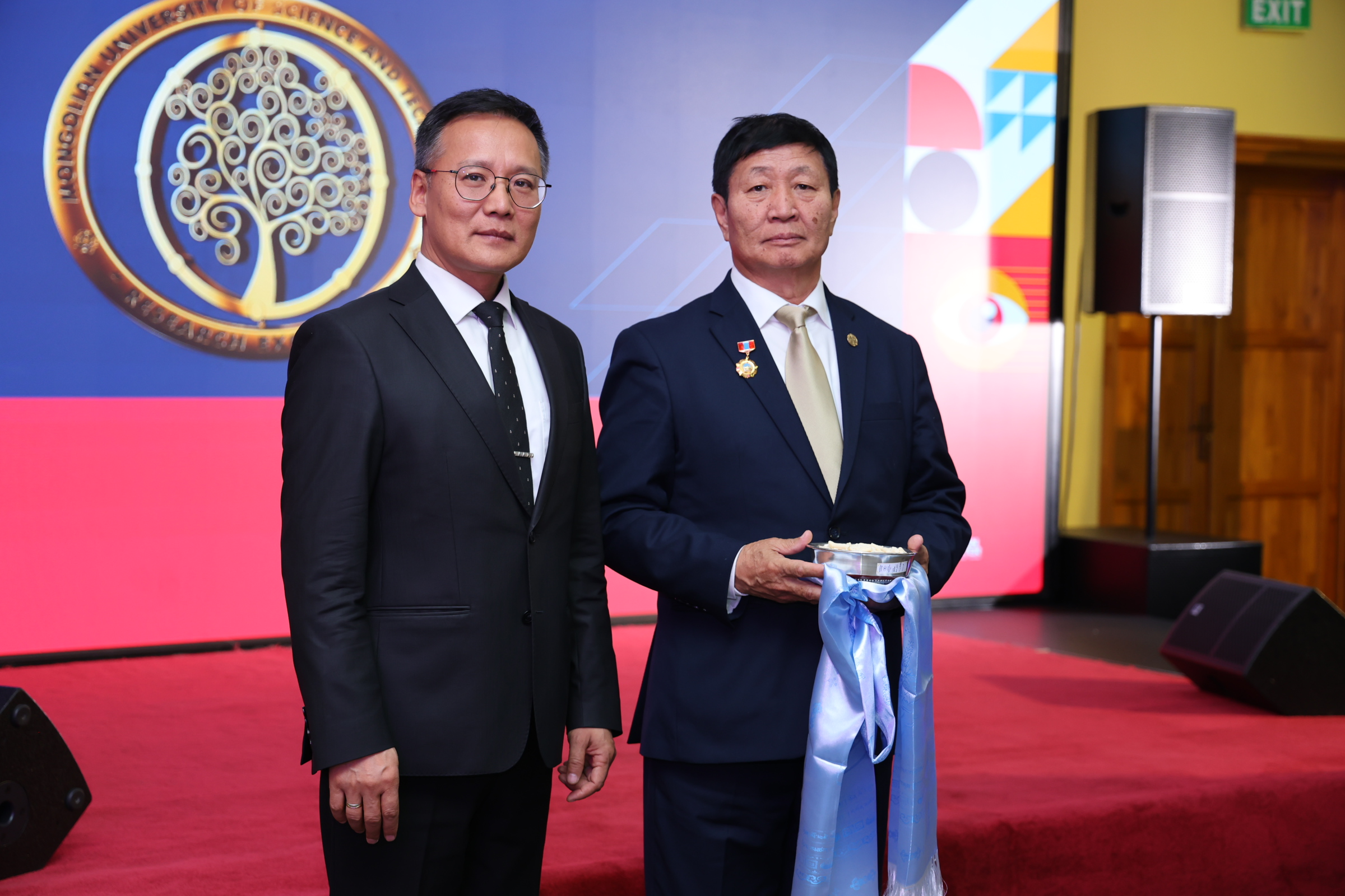 Шинжлэх ухаан, технологийн их сургуулийн хамт олон "Шинжлэх ухаан, технологи, инновацын шилдэг бүтээл" танилцуулах "2IP-2025" арга хэмжээний үеэр Шинжлэх ухааны гавьяат зүтгэлтэн Академич, Шинжлэх ухааны доктор, профессор Х.Энхжаргалыг хүлээн авч хүндэтгэл үзүүллээ.