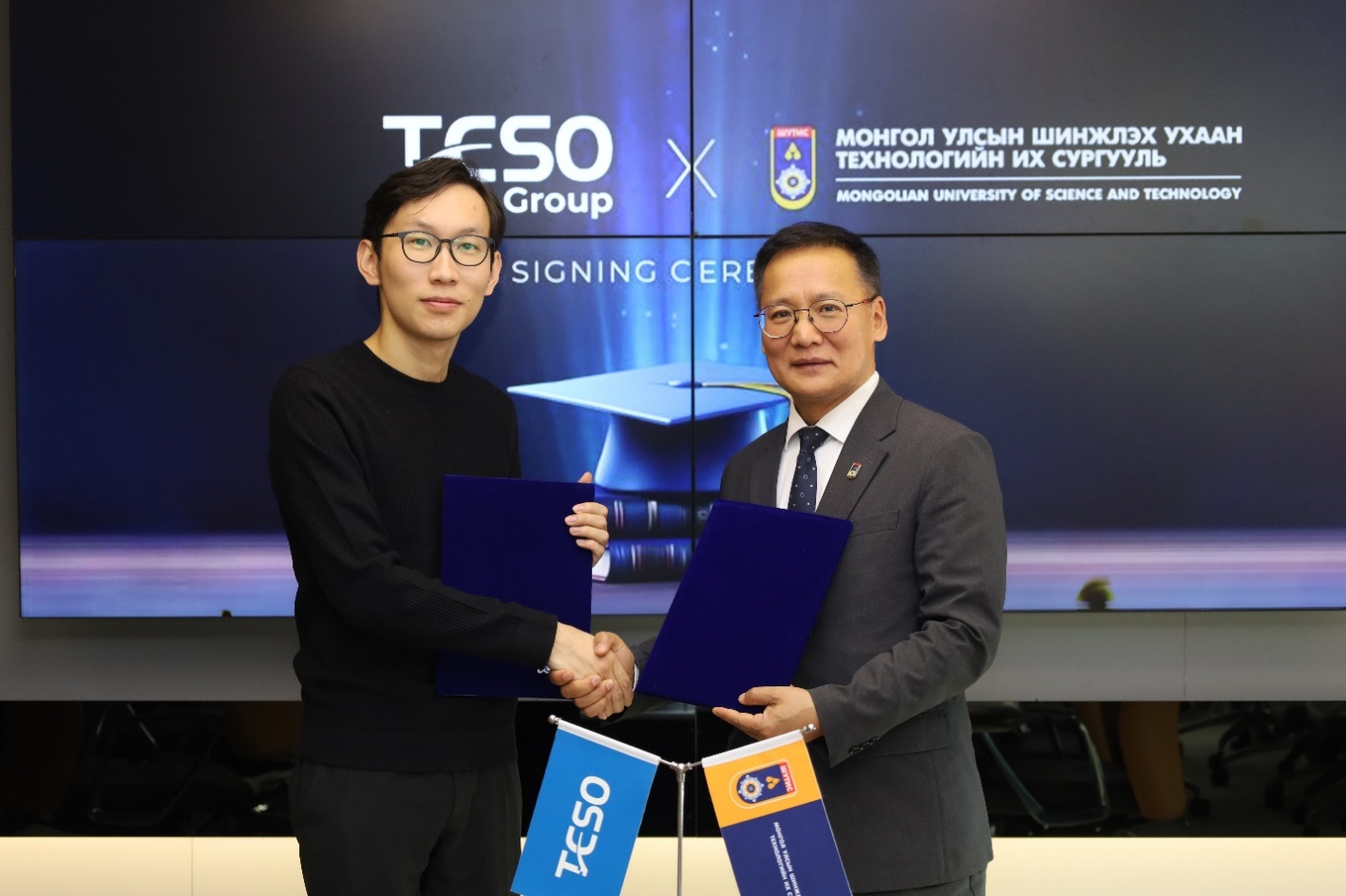 Энэхүү хөтөлбөрийн хүрээнд Шинжлэх Ухаан, Технологийн Их Сургууль (ШУТИС) ТЭСО Групптэй хамтран ажиллах санамж бичиг байгууллаа. Санамж бичигт ШУТИС-ийн Ректор Т. Намнан, ТЭСО Группийн дэд захирлууд гарын үсэг зурж, хамтын ажиллагаагаа баталгаажуулав.