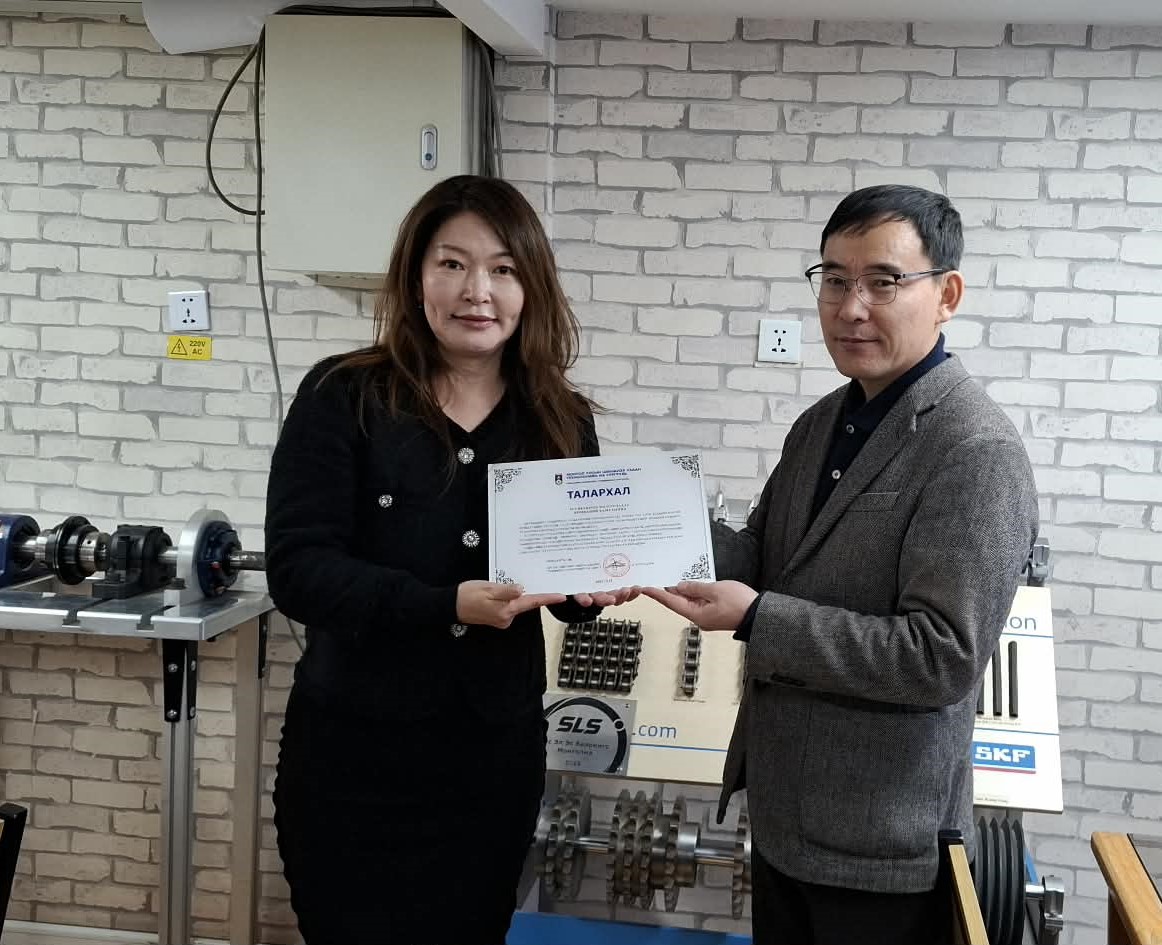 Сингапур улсын Монгол дахь SLS Bearings Mongolia LLC компанийн хамт олон нь ШУТИС-ийн Механик инженер, тээврийн сургуультай хамтран ажиллах хүсэлтээ илэрхийлж улмаар дэлхийн нэртэй брэнд болох SKF, Timken, FAG үйлдвэрийн усан онгоцны сэнс, холхивчны үүр, хүч дамжуулах одон араан гинж, цахилгаан хөдөлгүүрийн сэнс, ремений үзүүлэн зэрэг сургалтын тоног төхөөрөмжүүдийг хүлээлгэн өглөө.