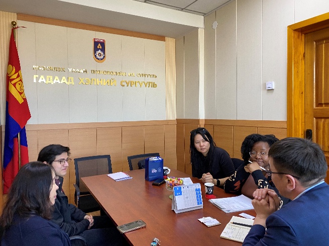 АНУ-ын ЭСЯ-ны Олон нийттэй харилцах албаны дэд дарга Маиа, Фулбрайт солилцооны хөтөлбөр хариуцсан зохицуулагч Х.Саруул нар 2026 оны 3-р сарын 30-нд ШУТИС-ийн ГХС-ийн Англи хэл судлалын тэнхимд ажиллаж буй Фулбрайт хөтөлбөрийн туслах багш Сиднэй Робинсоны ажил байдалтай танилцан хөтөлбөр хэрэгжүүлэгч профессор, багш нартай уулзалт ярилцлага хийж, ГХС-ийн захирал Ц.Энхбаатартай цаашид хамтын ажиллагааг өргөжүүлэх талаар санал солилцов.