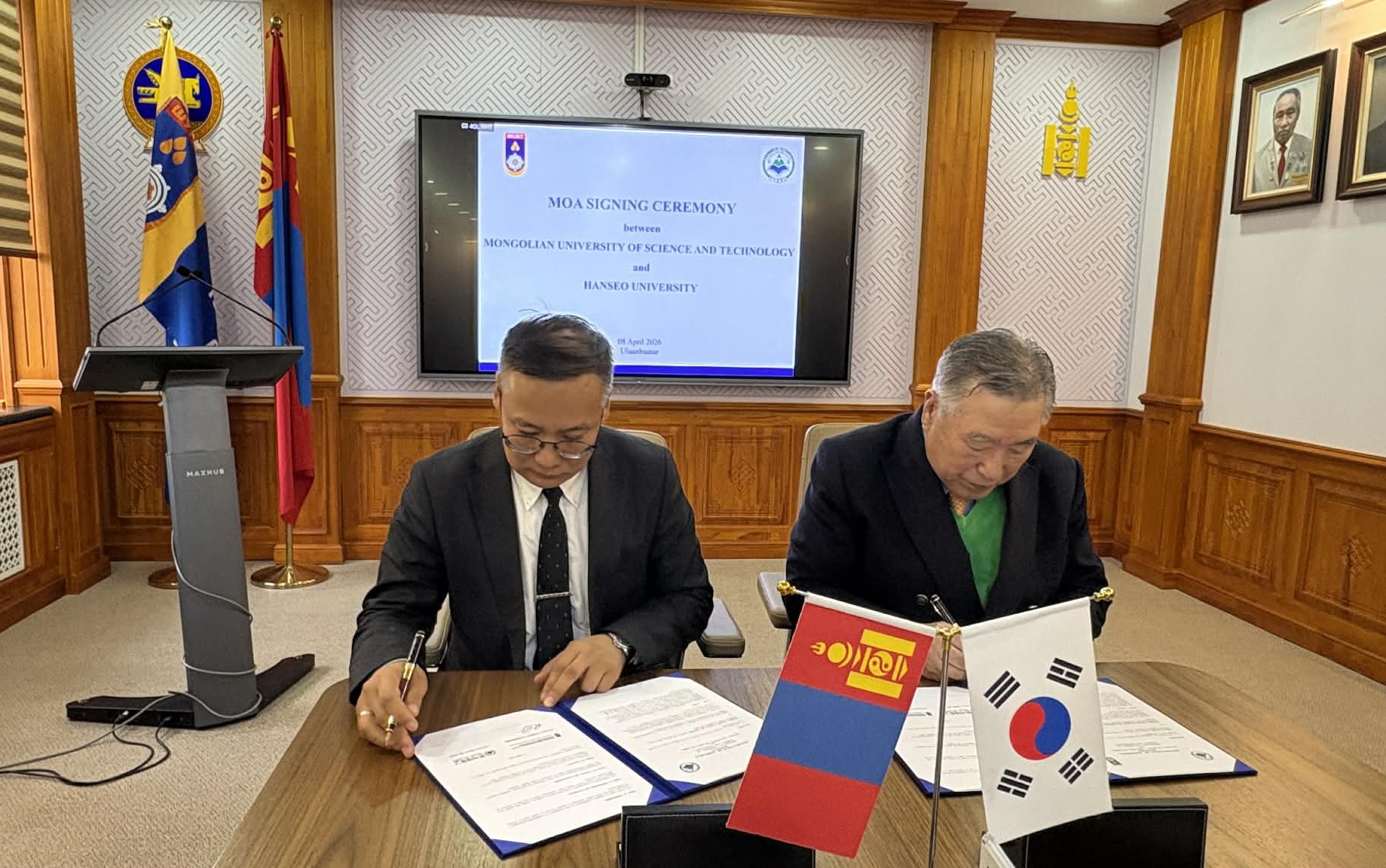 Шинжлэх Ухаан, Технологийн Их Сургууль (ШУТИС) болон БНСУ-ын Хансо их сургууль (Hanseo University) хооронд иргэний нисэхийн салбарт мэргэжилтэн бэлтгэх, сургалт болон судалгааны ажлыг шинэ шатанд гаргах зорилгоор Хамтын ажиллагааны гэрээ (MoA)-нд гарын үсэг зурах ёслол 2026 оны 04 дүгээр сарын 08-ны өдөр боллоо.