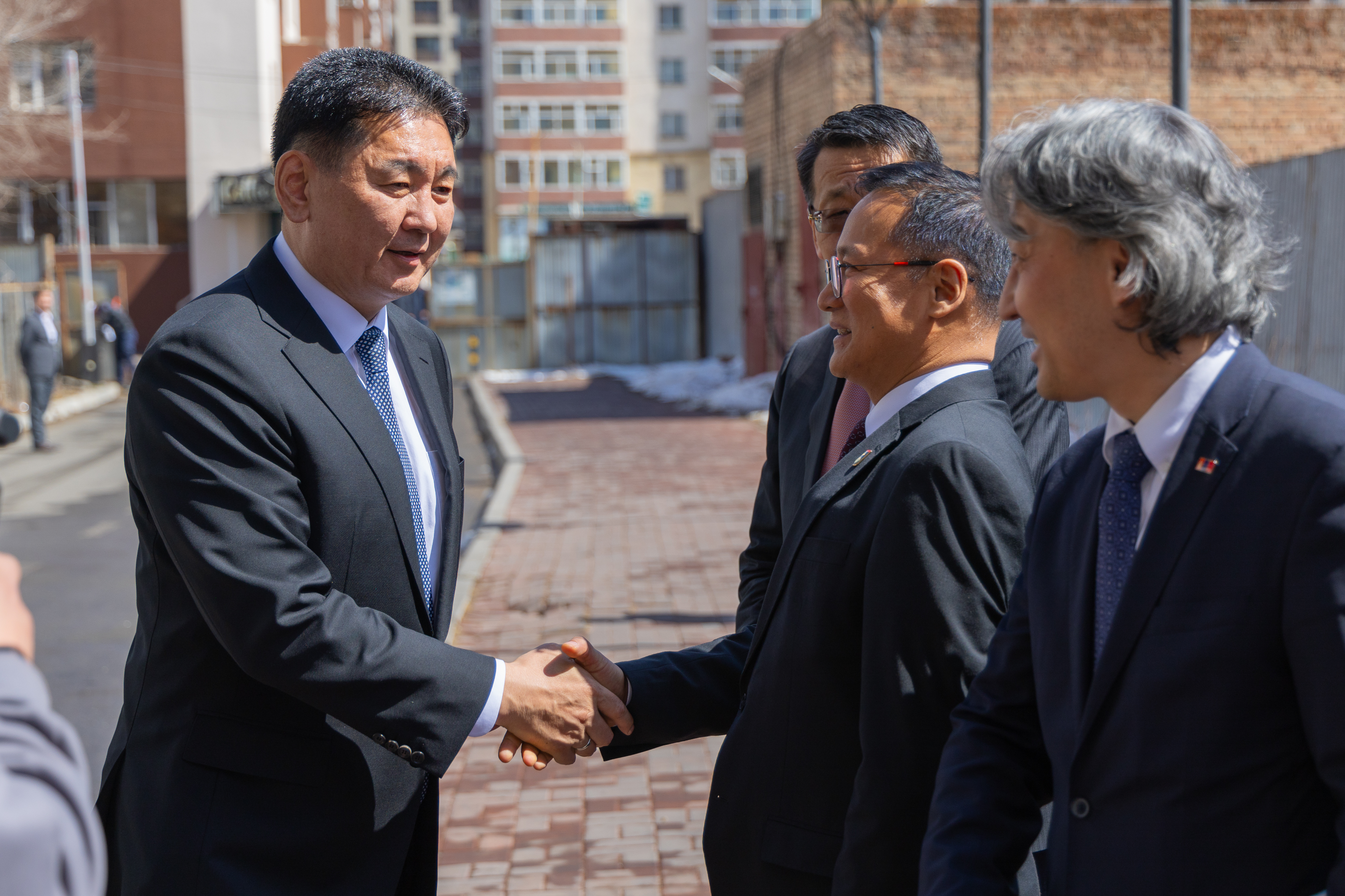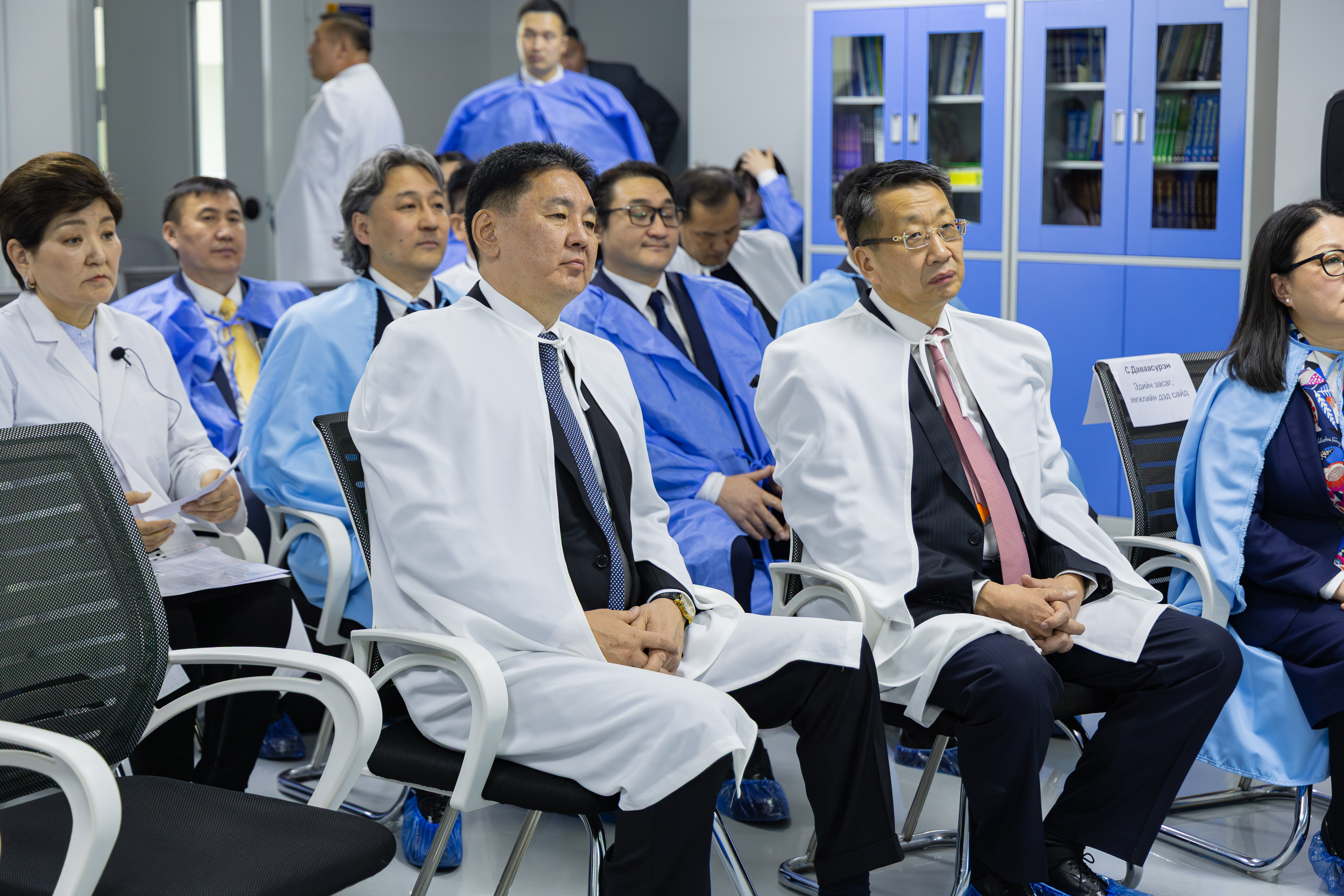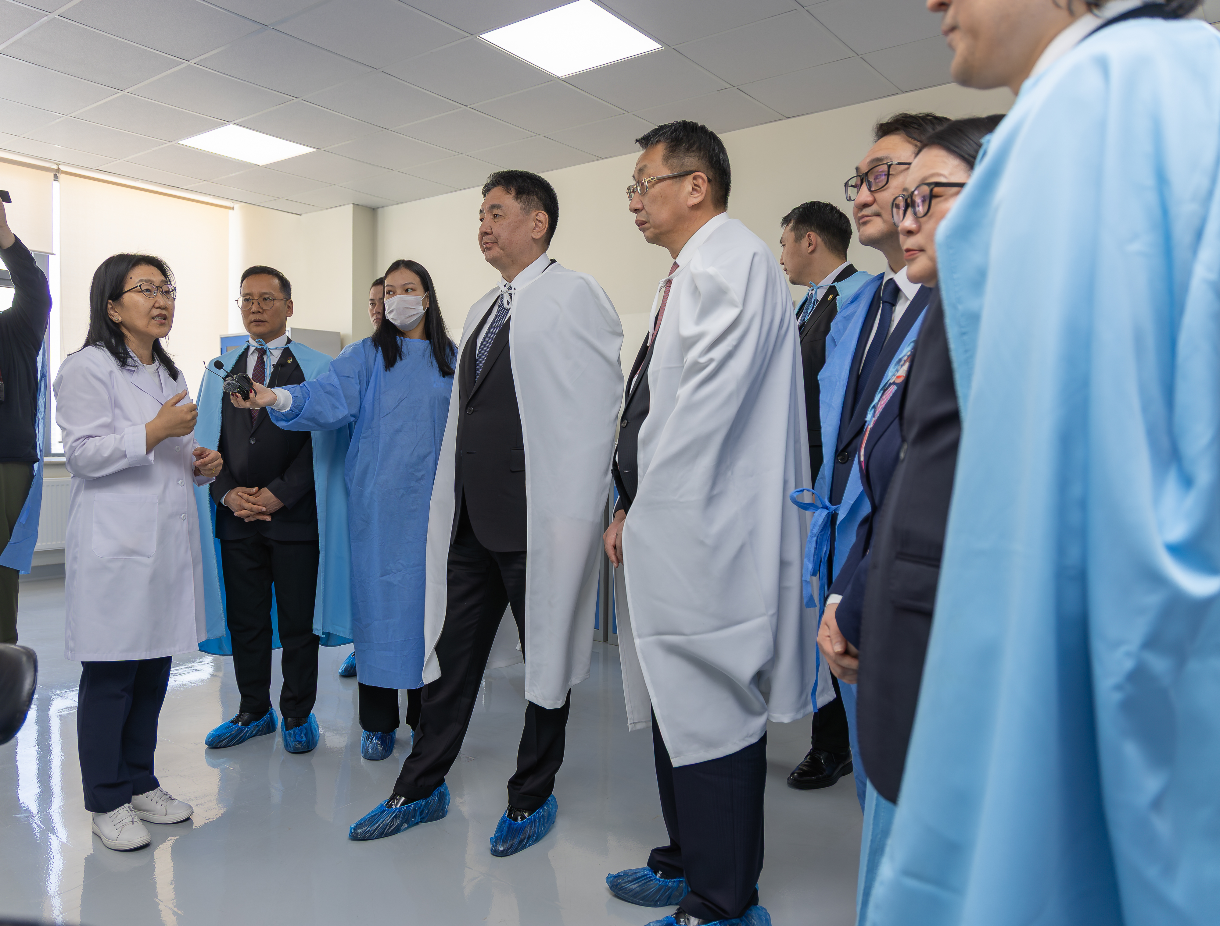 Ерөнхийлөгчийг дагалдан БЯ-ны сайд Л.Энх-Амгалан, Ерөнхийлөгчийн Боловсрол, шинжлэх ухаан, технологийн бодлогын зөвлөх Ч.Лодойравсал, Ерөнхийлөгчийн Үйлдвэр, үйлчилгээний бодлогын зөвлөх Ч.Даваабаяр, ЭЗХЯ-ны дэд сайд С.Даваасүрэн, УИХ-ын гишүүн С.Лүндэг, ШУА-ын ерөнхийлөгч Дэмбэрэл, Үндэсний шинжлэх ухаан, технологийн сангийн ажлын албаны дарга Б.Бат-Эрдэнэ нар болон холбогдох албаныхан дагалдан ирлээ.
