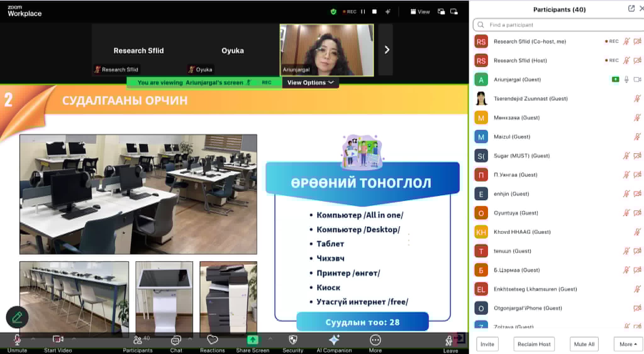 Семинарыг ШУТ-ийн Төв номын сангийн Ахлах мэргэжилтэн О.Ариунжаргал удирдан явуулж, номын сангийн нөөц боломж, үйлчилгээ болон цахим сангуудыг хэрхэн үр дүнтэй ашиглах талаар дэлгэрэнгүй мэдээлэл өгөв. Zoom платформоор дамжуулан зохион байгуулагдсан тус арга хэмжээнд 40 гаруй багш, ажилтан, магистрант, докторантууд оролцож, сонирхсон асуултдаа хариулт авч, идэвхтэй хэлэлцүүлэг өрнүүллээ.