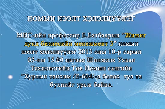 15.40-16.10 Жижиг дунд бизнесийн менежмент 3 номын тухай