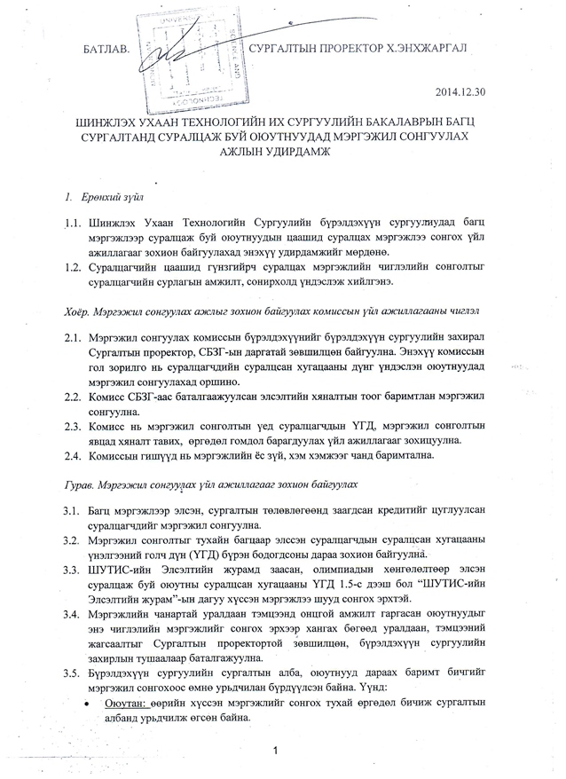 Дулааны инженерийн салбарын багц задарч мэргэжлийн хөтөлбөрүүд сонголт хийх тул оюутнууд мэргэжил сонгох ажлын удирдамжтай танилцна уу