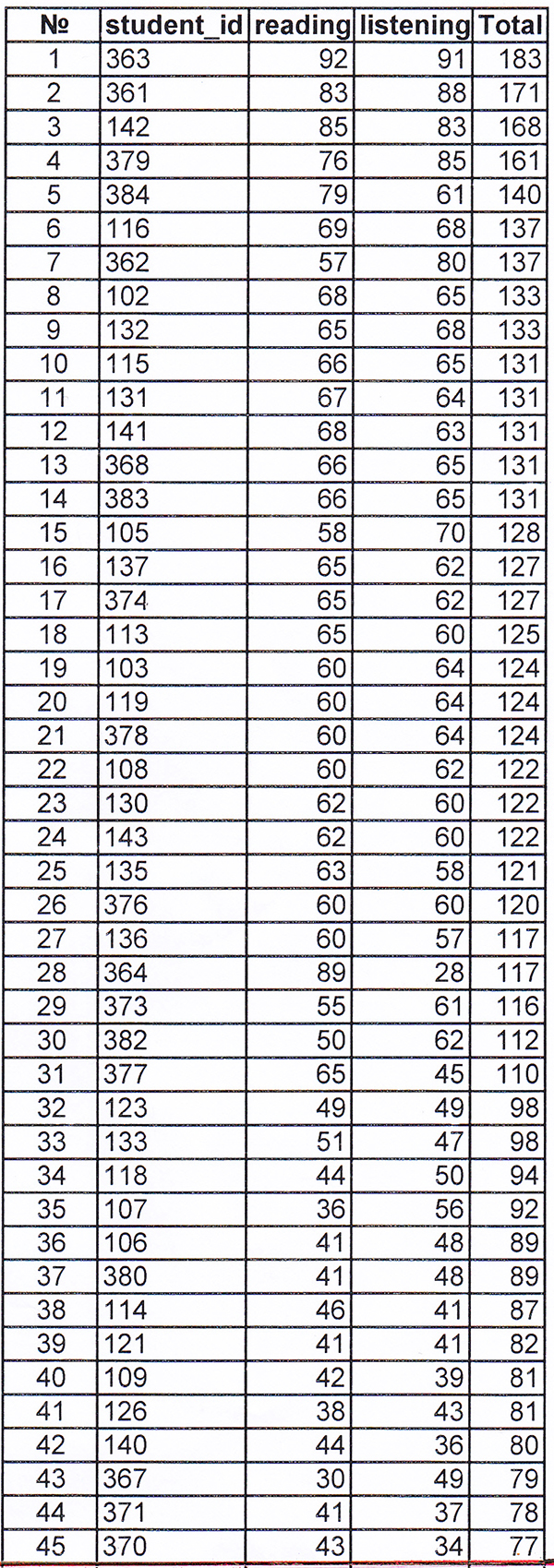 Багшийн сонгон шалгаруулалтад оролцогчдын Англи хэлний шалгалтад тэнцсэн хүмүүсийн онооны жагсаалт