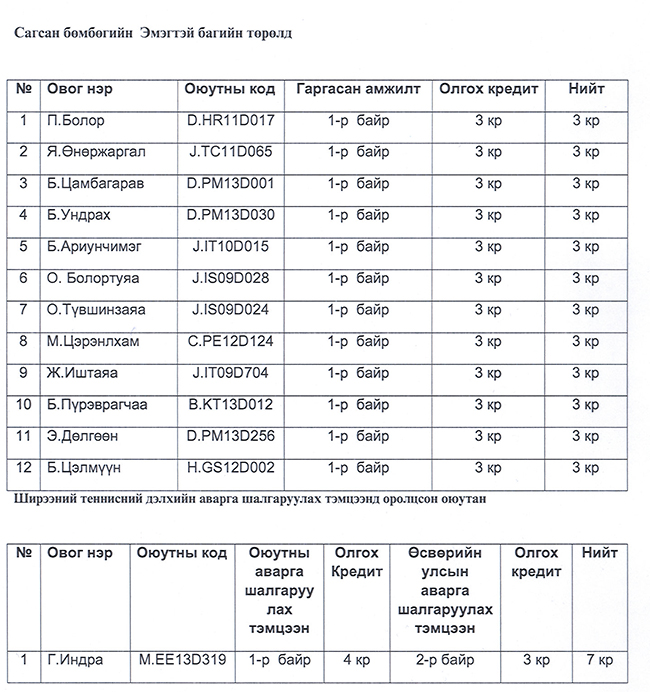© 2005- Монгол Улсын Шинжлэх Ухаан Технологийн Их Сургууль, Мэдээллийн технологийн төв