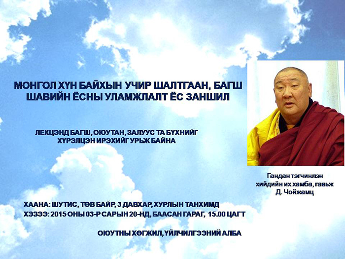 Монгол хүн байхын учир шалтгаан, багш шавийн ёсны уламжлалт ёс заншил лекц болно