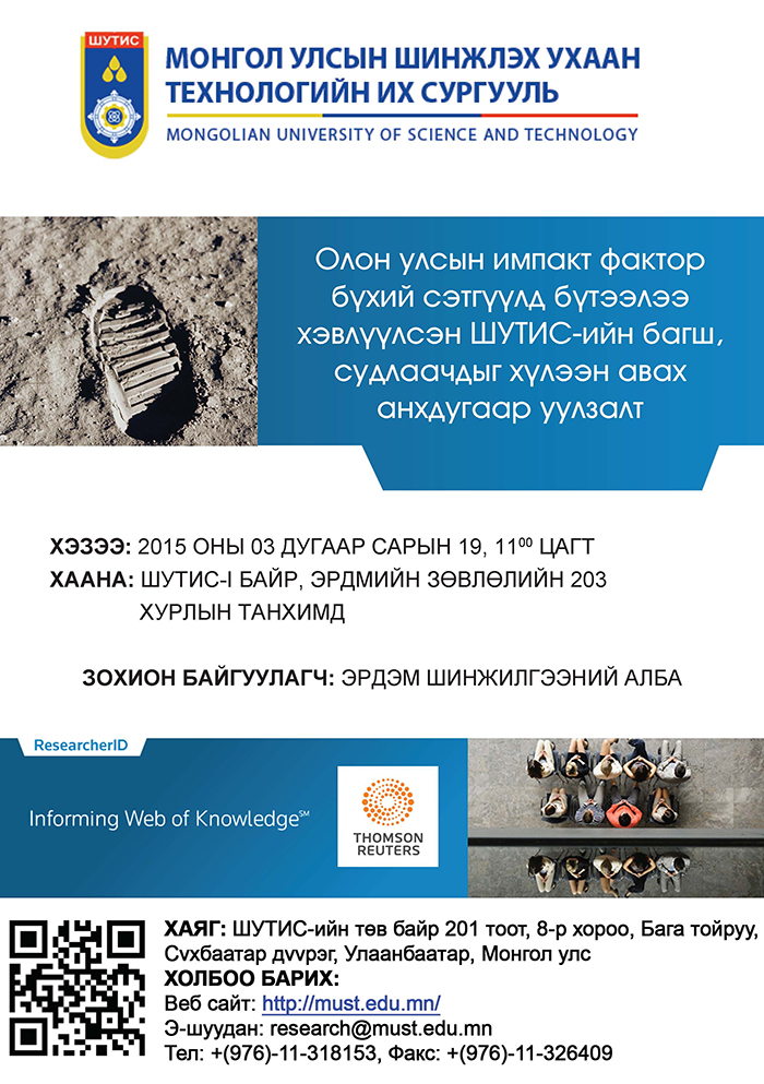 Олон улсын импакт фактор бүхий сэтгүүлд бүтээлээ хэвлүүлсэн ШУТИС-ийн багш, судлаачдыг хүлээн авах анхдугаар уулзалт болно