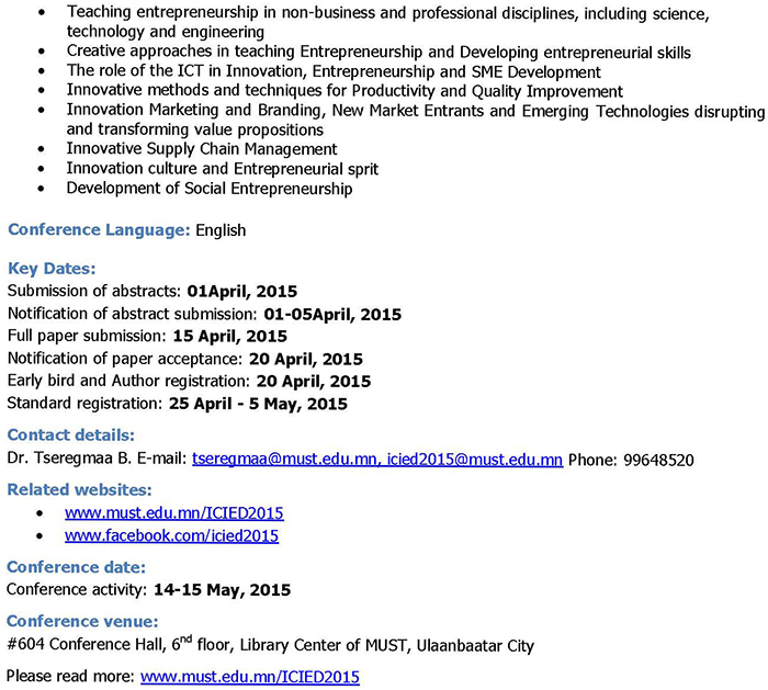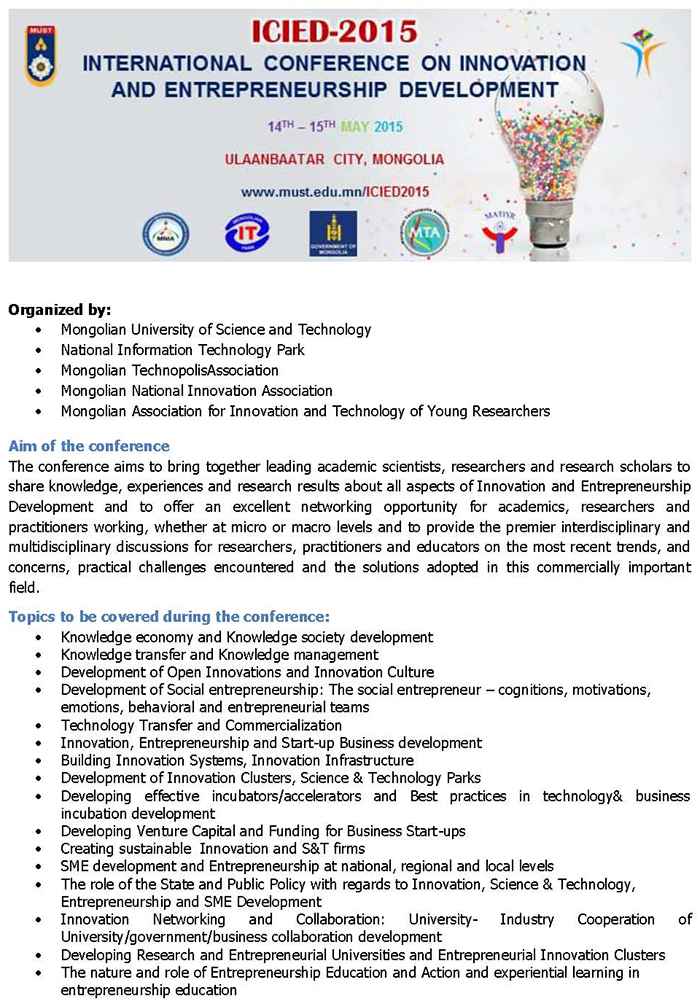 International Conference on Innovation and Entrepreneurship Development 2015