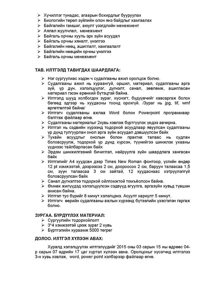 Ногоон хөгжил-байгаль орчин" сэдэвт оюутны эрдэм шинжилгээний бага хурлын удирдамж