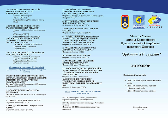 Монгол Улсын Анхны Ерөнхийлөгч Пунсалмаагийн Очирбатын нэрэмжит Оюутны “Эрдмийн XV чуулган”-ы хөтөлбөр