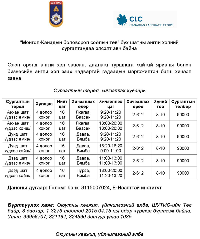 “Монгол-Канадын боловсрол соёлын төв” бүх шатны англи хэлний сургалтандаа элсэлт авч байна
