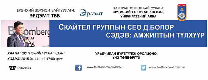 Скайтел группын CEO Д.Болор "Амжилтын түлхүүр" сэдэвт лекц уншина
