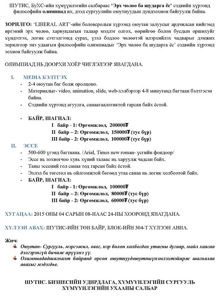 ‘Эрх чөлөө ба шударга ёс’ сэдвийн хүрээнд философийн олимпиад болно