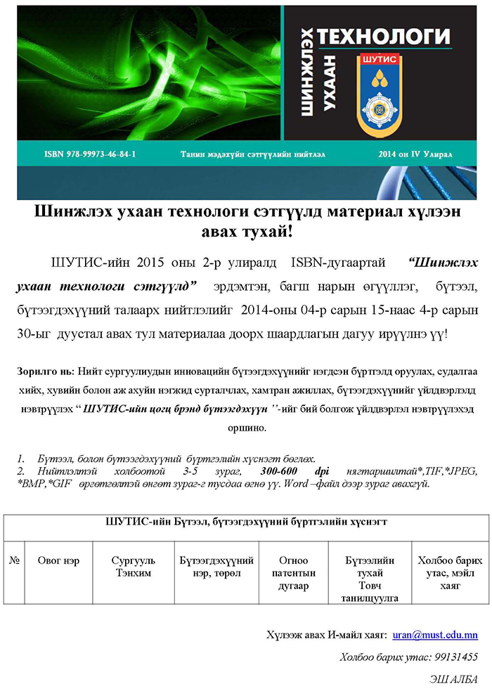 Шинжлэх ухаан технологи сэтгүүлд материал хүлээн авах тухай