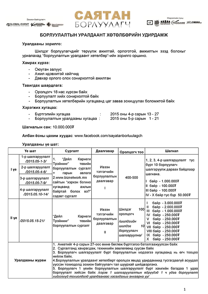 ҮЙЛЧИЛГЭЭНИЙ ЧИГЛЭЛЭЭР ТҮРЭЭСЛЭГЧИЙГ СОНГОН ШАЛГАРУУЛАЛТЫН УРИЛГА