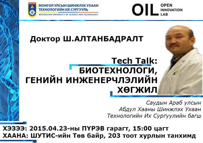 Tech Talk: "БИОТЕХНОЛОГИ, ГЕНИЙН ИНЖЕНЕРЧЛЭЛИЙН ХӨГЖИЛ" сэдэвт нээлттэй илтгэлд урьж байна.