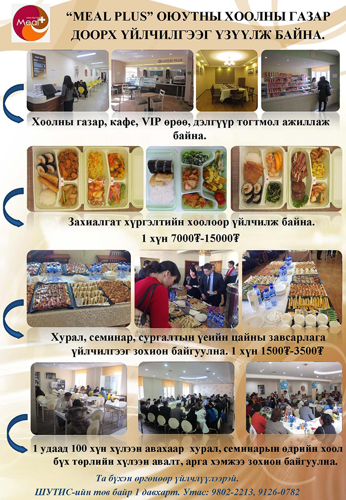 "Meal plus" оюутны хоолны газар доорх үйлчилгээг үзүүлж байна