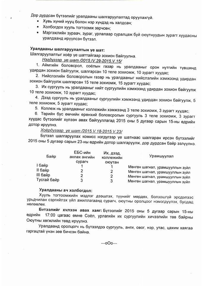 Энэхүү уралдаанд оролцох бүтээлийг Оюутны хөгжил, үйлчилгээний албанд 2015 оны 5 дугаар сарын 20-ны дотор хүлээн авна.