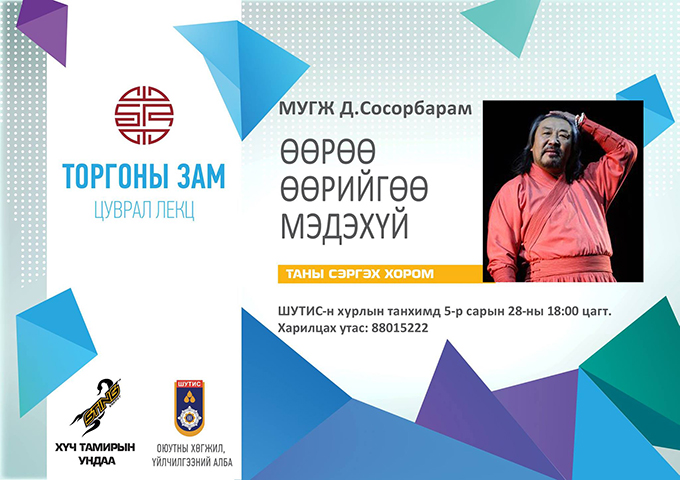Торгоны зам цуврал лекцийн зочин МУГЖ Д.Сосорбарам "Өөрөө өөрийгөө мэдэхүй" лекц уншина