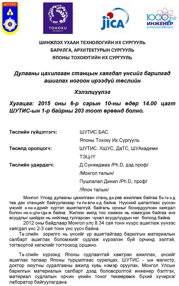 Дулааны цахилгаан станцын хаягдал үнсийг барилгад ашиглах ногоон ирээдүй төслийн хэлэлцүүлэг