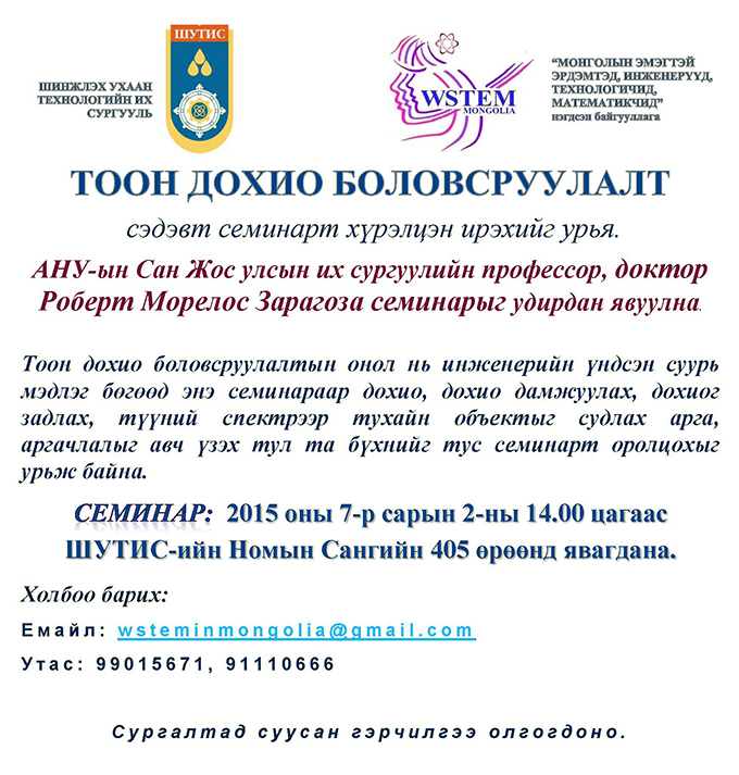 "Тоо дохио боловсруулалт" сэдэвт семинар болно