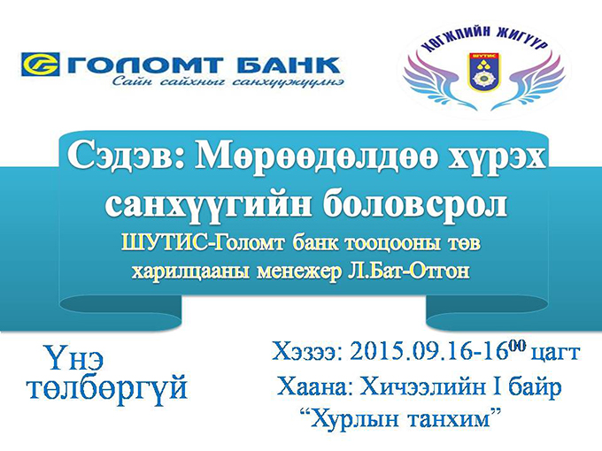 Голомт банкны харилцааны менежер Л.Бат-отгон "Мөрөөдөлдөө хүрэх санхүүгийн боловсрол" лекц болно
