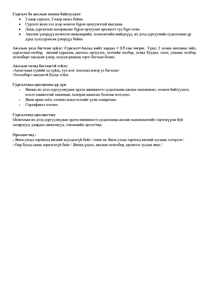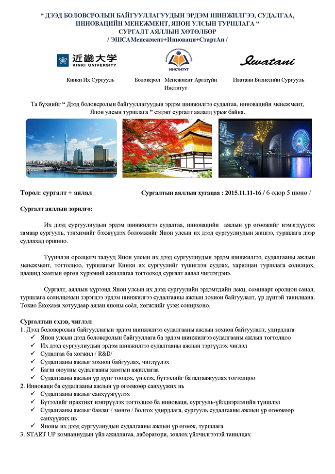 "Эрдэм шинжилгээ, судалгаа, инновацийн менежмент, япон улсын туршлага" сургалтанд урьж байна