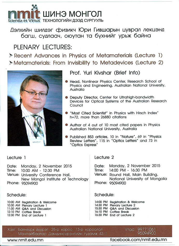 Дэлхийн шилдэг Физикч Юри Гившарын цуврал лекцэнд урьж байна