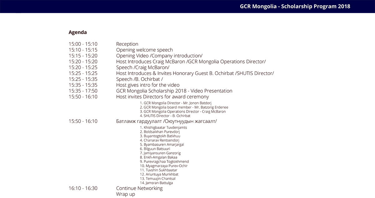 GRC Mongolia тэтгэлэг олгох хөтөлбөр