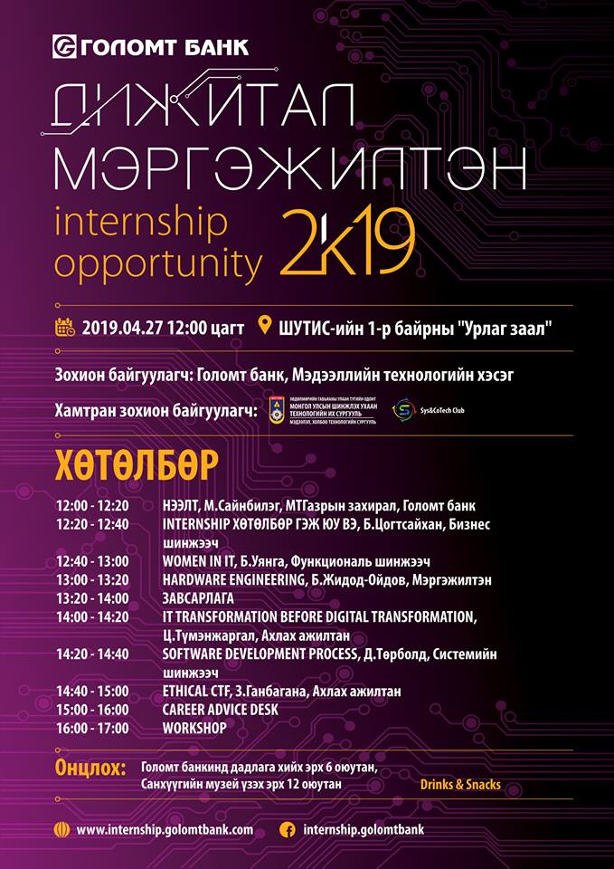 Дижитал мэргэжилтэн internship opportunity 2019