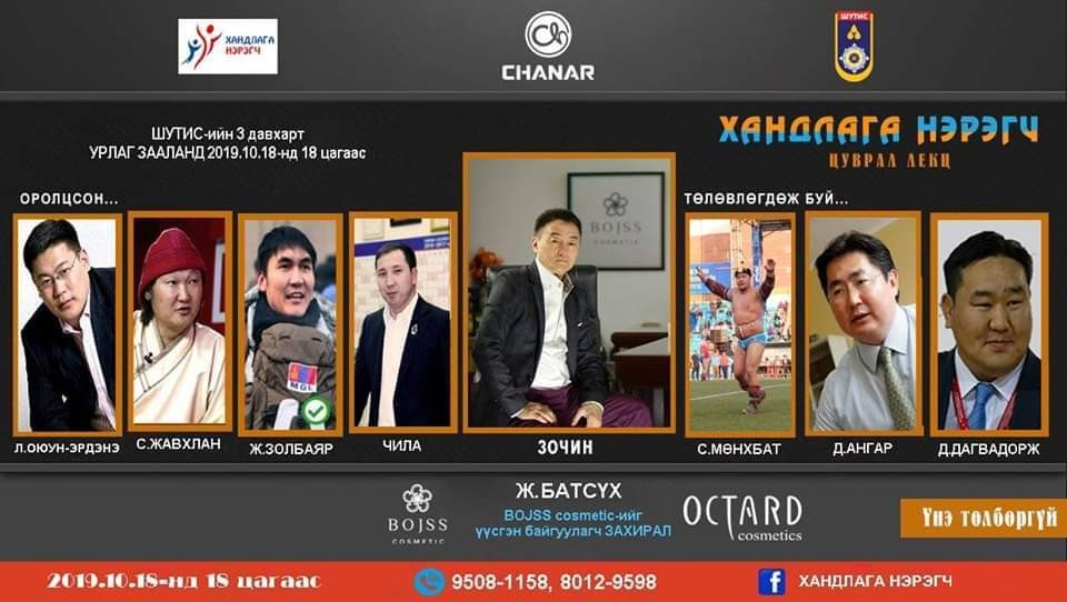 Энэ удаагийн лекцийн зочноор BOJSS брэндийг үүсгэн байгуулагч, захирал Ж.Батсүх оролцоно. Лекц: ШУТИС-ийн I байр Урлаг зааланд 2019 оны 10 дугаар сарын 18 нд 18:00 цагт