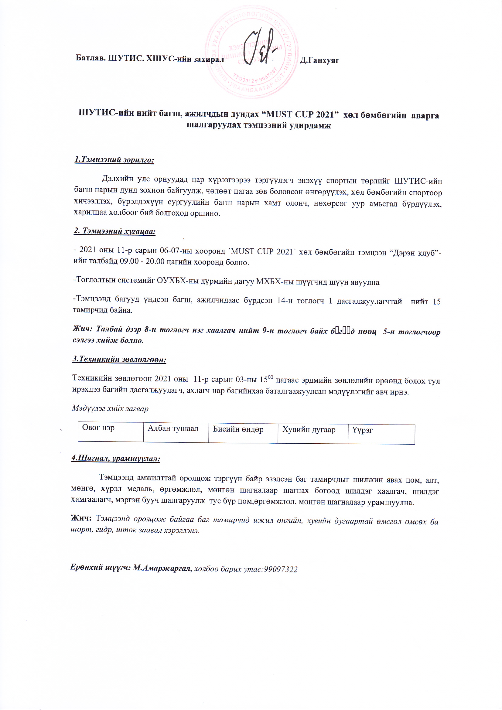 ШУТИС-ийн багш, ажилчдын дундах "MUST CUP 2021" хөл бөмбөгийн аварга шалгаруулах тэмцээний удирдамж