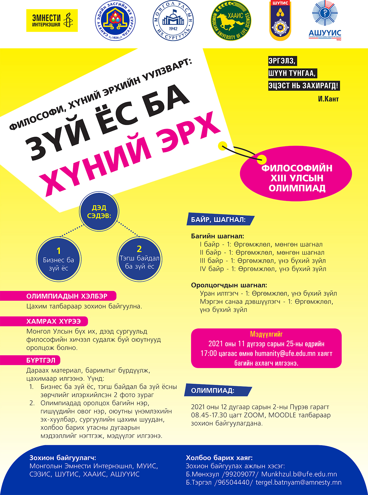 Философийн улсын XIII олимпиад энэ жил "Зүй ёс ба Хүний эрх"