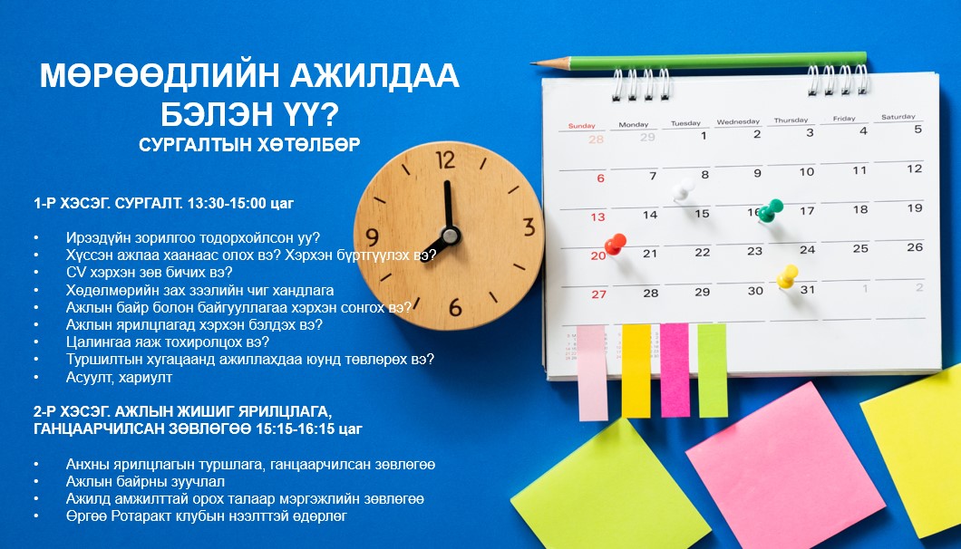 Оюутан залуусыг ажлын байранд өөрийгөө бэлдэх, мөрөөдлийн ажилдаа ороход нь үнэ цэнтэй мэдлэг, ур чадваруудыг эзэмшүүлэх, зорилготой сургалтын бүртгэл эхэллээ.
