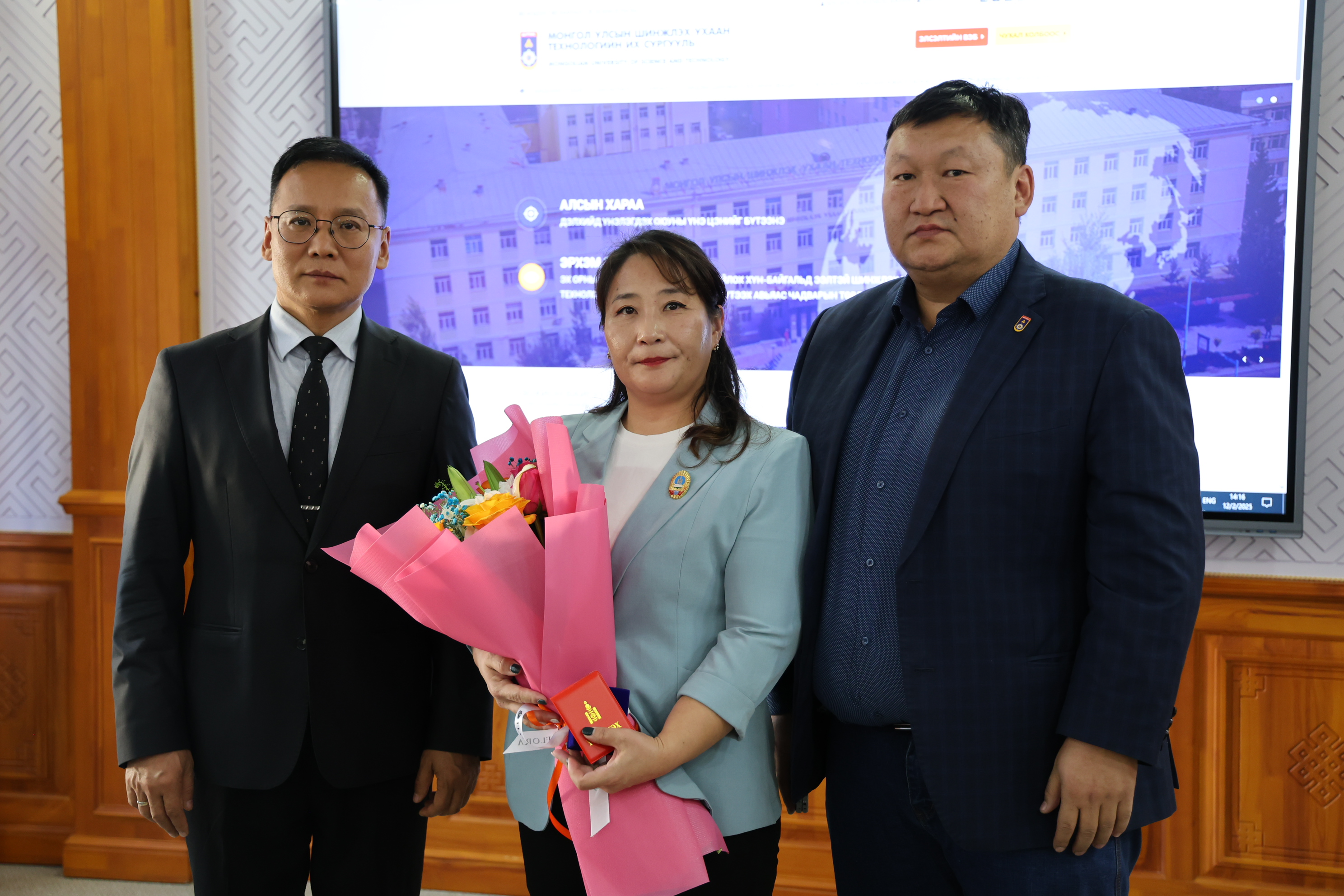 ШУТИС-ийн Хэвлэлийн газрын нярав Л.Нарангуа нь Хөдөлмөр, нийгмийн хамгааллын яамны “Нийгмийн хамгааллын салбарын тэргүүний ажилтан” тэмдгээр шагнагдлаа. Шагналыг 2025 оны 12 дугаар сарын 2-ны өдөр болсон ШУТИС-ийн Ректорын зөвлөлийн хурлын үеэр их сургуулийн ректор гардуулан өгөв. Л.Нарангуа нь ШУТИС-ийн хэвлэлийн үйл ажиллагаанд үнэнч, хариуцлагатайгаар ажиллаж, байгууллагын хэвлэмэл материалын хэвлэлт, санхүүжилт, бараа материалын бүртгэлийг мэргэжлийн түвшинд хариуцан ажиллаж ирсэн юм. Шагнал хүртсэн Л.Нарангуа танд ШУТИС-ийн хамт олны өмнөөс ажил хөдөлмөрийн өндөр амжилт, эрүүл энх, сайн сайхныг хүсэн ерөөе.