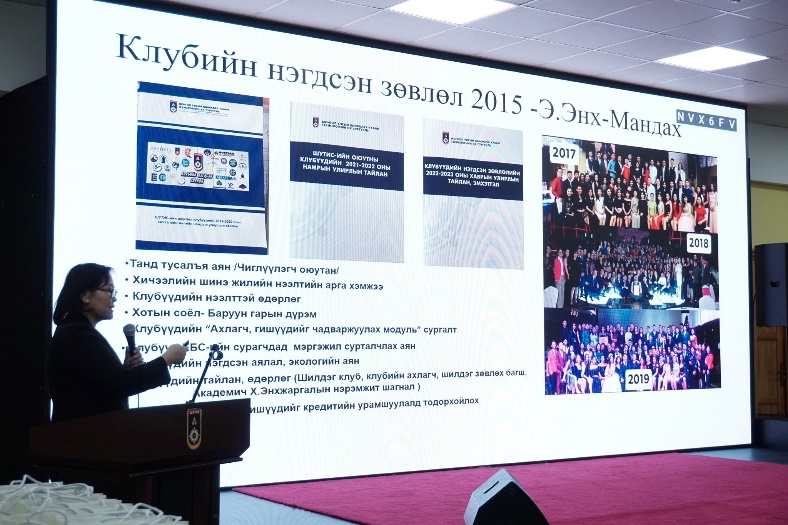 “Манлайллын эхлэл: Клубийн нэгдсэн зөвлөл үүсэл” сэдвээр оюутны үйлчилгээний албаны дарга доктор (Ph.D), дэд профессор Д. Цогзолмаа , “Клубийн нэгдсэн зөвлөл 2025” сэдвээр ХХҮДС- ийн Хүнсний чанар, аюулгүй байдал хөтөлбөрийн III курсийн оюутан, КНЗ-ийн дарга Б. Солонго, “Клубийн оролцоо-Амжилттай оюутны үндэс” сэдвээр БАС-ийн Архитектур хөтөлбөрийн V курсийн оюутан, илтгэх урлаг, мэтгэлцээний “Empowerment” клубийн 2024-2025 Клубийн ахлагч Ш. Амгаланбаяр, “Клубийн оролцоо-Ирээдүйн хөгжил, манлайлал сэдвээр МХТС-ийн Мэдээлэл систем хөтөлбөрийн IV курсийн оюутан, 2024-2025 “GDG on Campus Must” ахлагч Б.Пүрэвжаргал, “Клубийн нэгдсэн зөвлөл: Үнэ цэнэ” сэдвээр БАС-ийн 2025 Сантехникийн инженерчлэл хөтөлбөрийн төгсөгч Д.Жамсран, 2015 оны Клубийн нэгдсэн зөвлөлийн дарга Э. Энхмандах, 2016 оны Клубийн нэгдсэн зөвлөлийн дарга Б.Мөнх-Эрдэнэ нар илтгэл танилцуулсан юм.