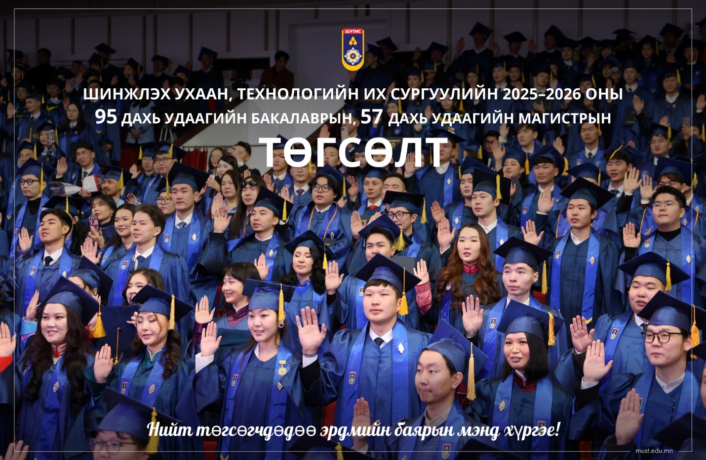 Шинжлэх ухаан технологийн их сургуулийн 2025-2026 оны хичээлийн жилийн намрын улирлын бакалаврын 95, магистрын 57 дахь удаагийн төгсөлт 2026 оны 01 дүгээр сарын 21-ний өдөр Соёлын төв өргөөнд ёслол төгөлдөр зохион байгуулагдлаа. Энэ удаагийн төгсөлтөөр 2 доктор, 171 магистр, 599 бакалавр, дэд бакалавр 28, политехник коллеж 60, Нийт 860 оюутан тус тус төгсөн гарч байна.