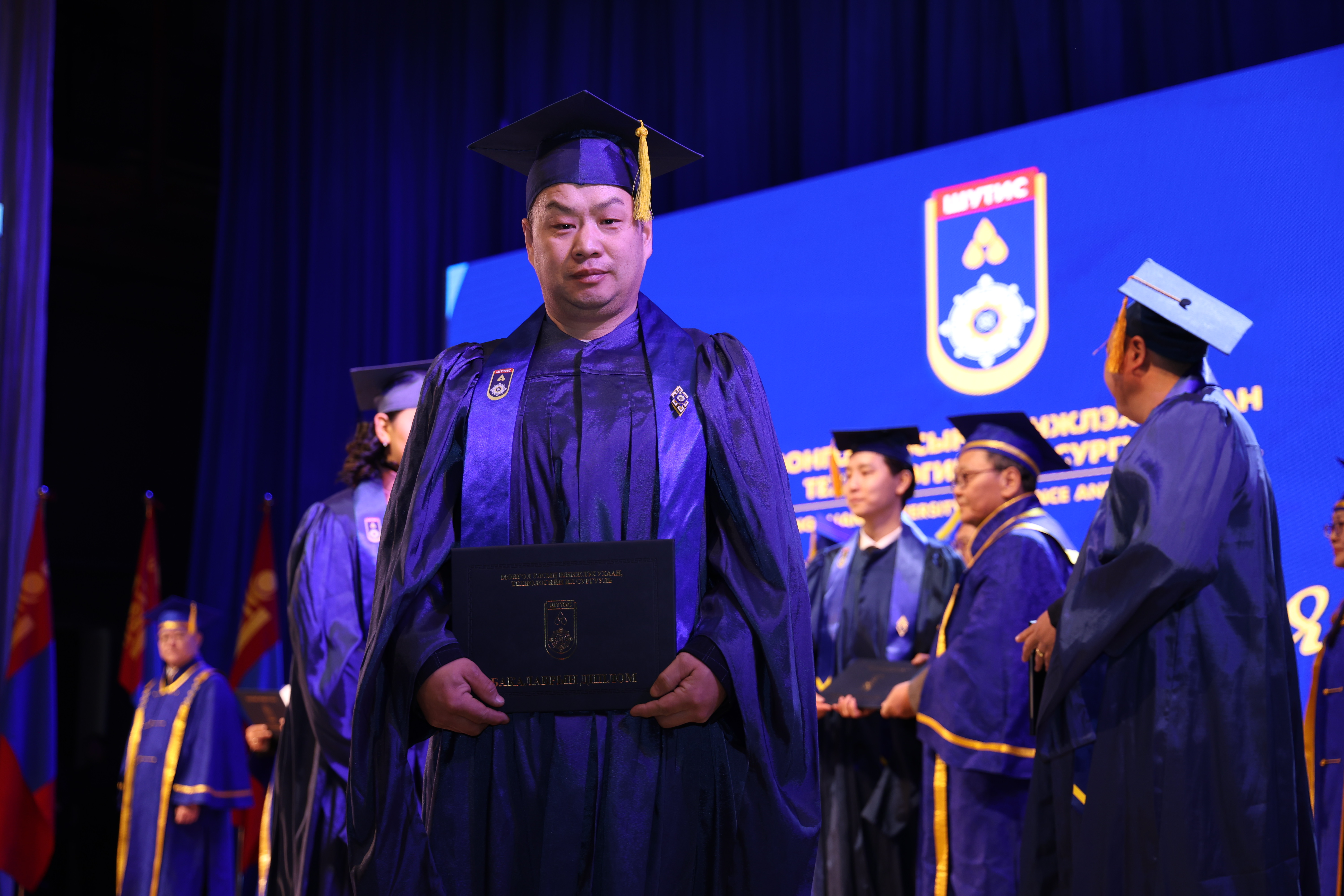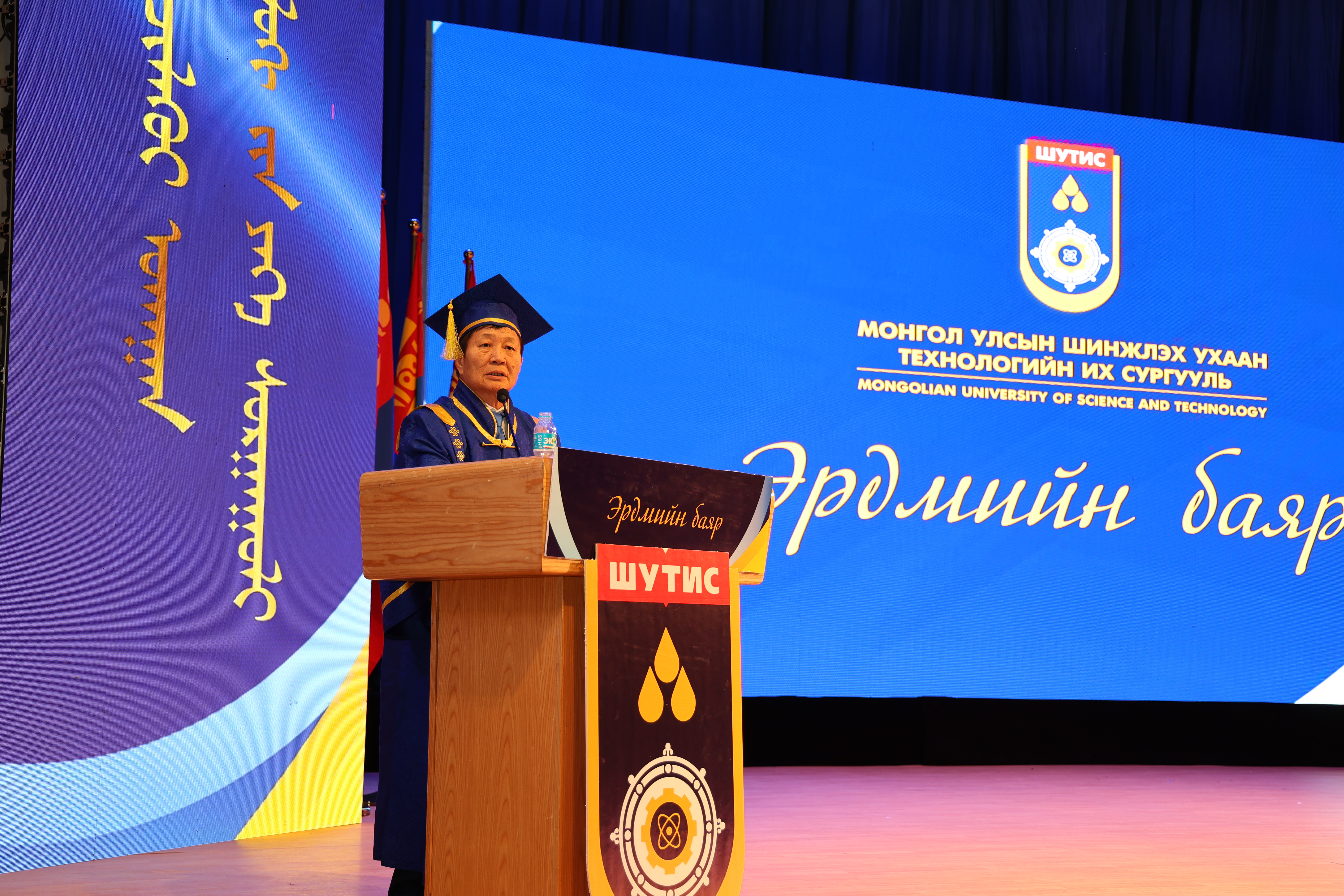 Төгсөгчдөд диплом олгох ШУТИС-ийн Ректорын тушаалыг сургалтын бодлого, зохицуулалтын албаны дарга доктор (Ph.D) М.Эрдэнэтуяа уншиж танилцуулснаар ШУТИС-ийн төгсөгчдөд диплом гардуулах ёслолын үйл ажиллагаа эхэлсэн. Нийт төгсөгчдөд баяр хүргэн Академич, Монгол улсын шинжлэх ухааны гавьяат зүтгэлтэн, эрчим хүчний инженерчлэлийн сургуулийн профессор Халтарын Энхжаргал мэндчилгээ дэвшүүллээ.