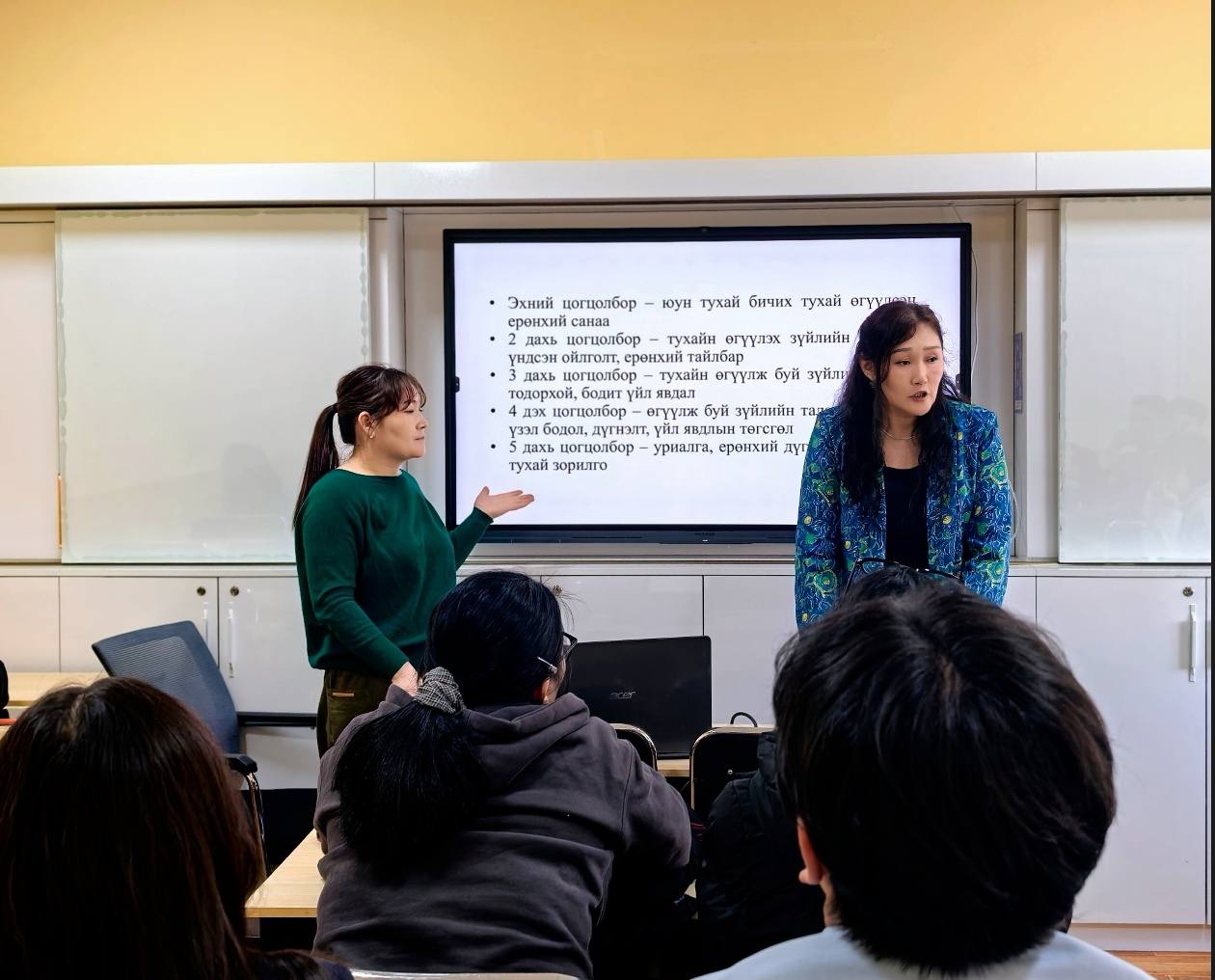 Нийслэлийн ерөнхий боловсролын 29 дүгээр сургуулийн 12 дугаар ангийн тусгай хэрэгцээтэй суралцагчдыг ШУТИС-ийн хэлний гадаад сургуулийн багш Б.Дэлгэрмаа, Б.Сонинцэцэг нар хүлээн авч, ШУТИС-ийн музейтэй танилцуулсан, 2026 оны 4 дүгээр сард зохион байгуулах Монгол хэл, бичгийн шалгалтад бэлтгэх зөвлөгөө өглөө.