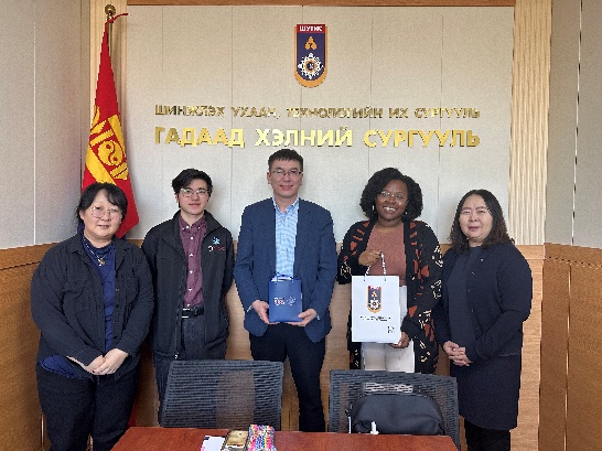 АНУ-ын ЭСЯ-ны Олон нийттэй харилцах албаны дэд дарга Маиа, Фулбрайт солилцооны хөтөлбөр хариуцсан зохицуулагч Х.Саруул нар 2026 оны 3-р сарын 30-нд ШУТИС-ийн ГХС-ийн Англи хэл судлалын тэнхимд ажиллаж буй Фулбрайт хөтөлбөрийн туслах багш Сиднэй Робинсоны ажил байдалтай танилцан хөтөлбөр хэрэгжүүлэгч профессор, багш нартай уулзалт ярилцлага хийж, ГХС-ийн захирал Ц.Энхбаатартай цаашид хамтын ажиллагааг өргөжүүлэх талаар санал солилцов.