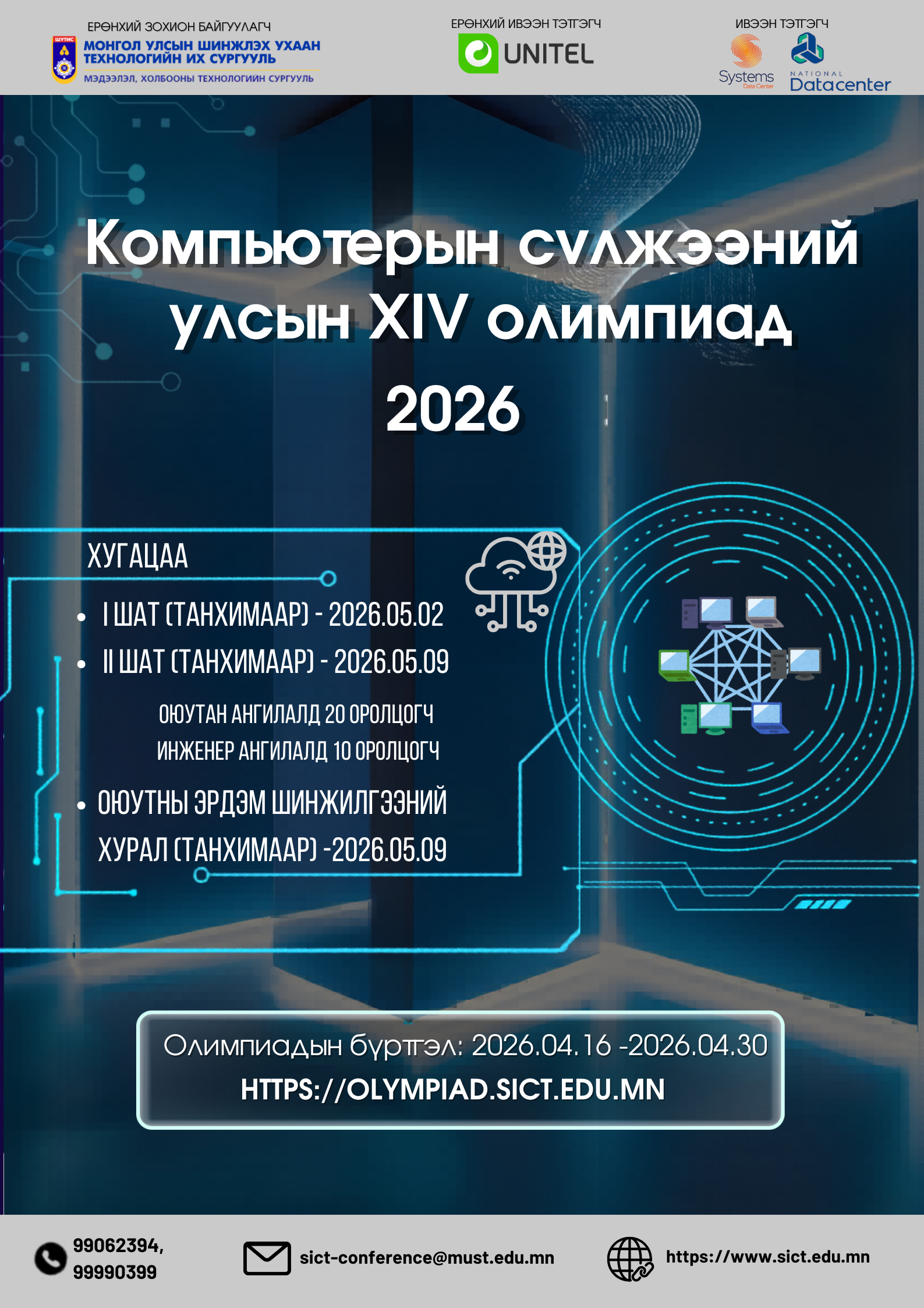 Бүртгэл болон дэлгэрэнгүй мэдээлэл: https://olympiad.sict.edu.mn